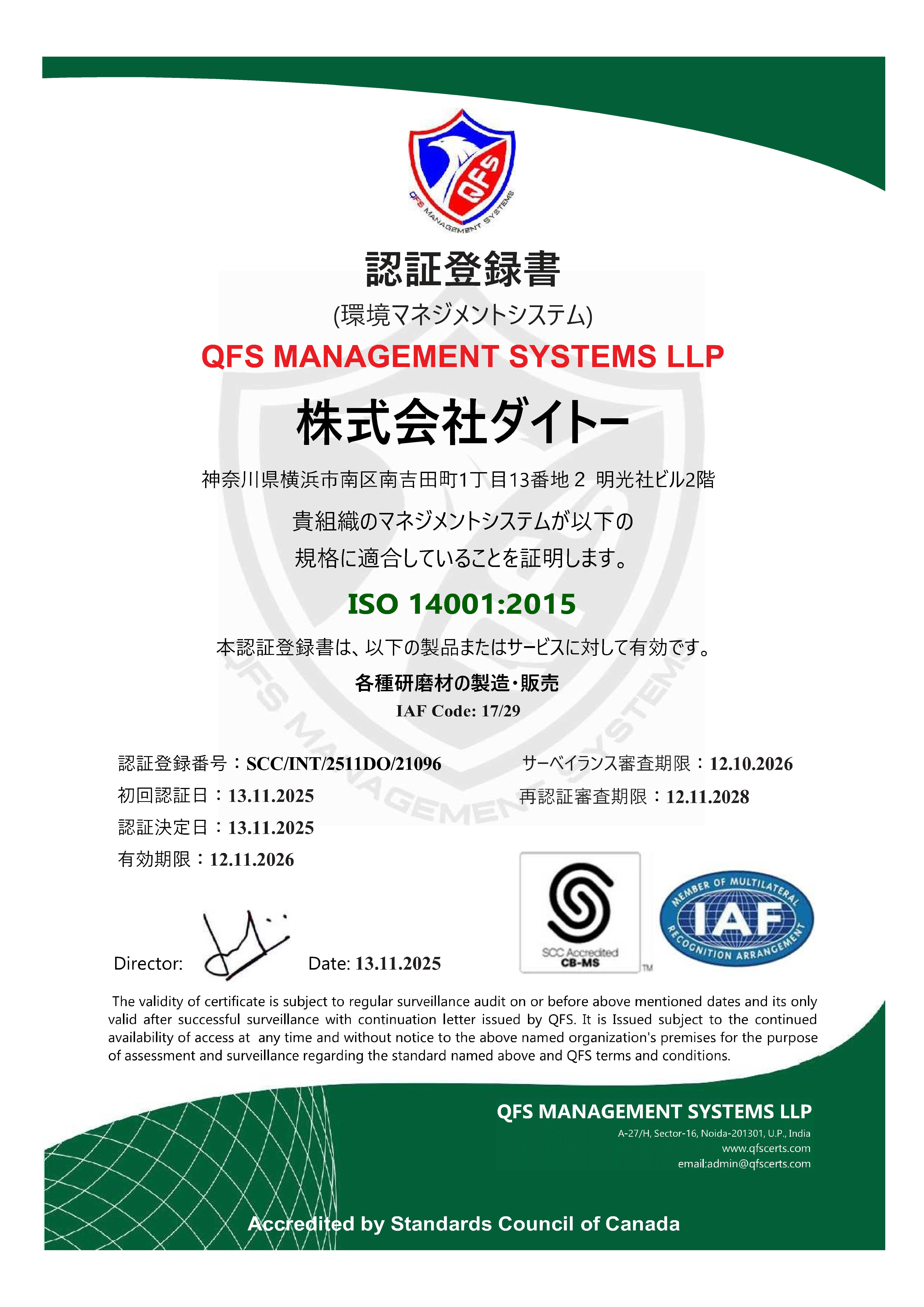 2025年11月13日、当社横浜本社は「ISO14001:2015(環境マネジメントシステム)」の認証を取得いたしましたので、ここにお知らせいたします。 ISO14001は、企業が環境保全に配慮しなが……… 続きを読む